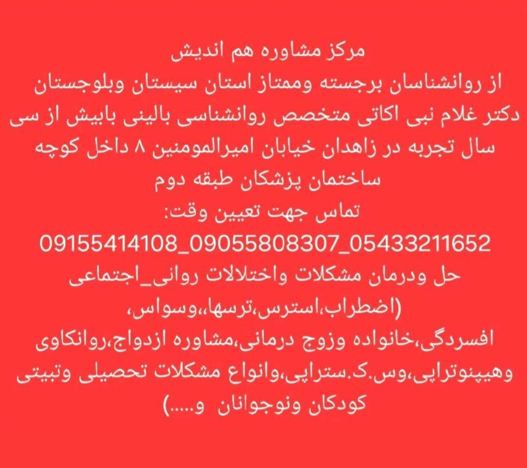 آدرس: ،امیرالمومنین۸ داخل کوچه،مرکزمشاوره هم اندیش